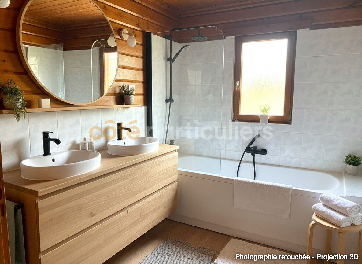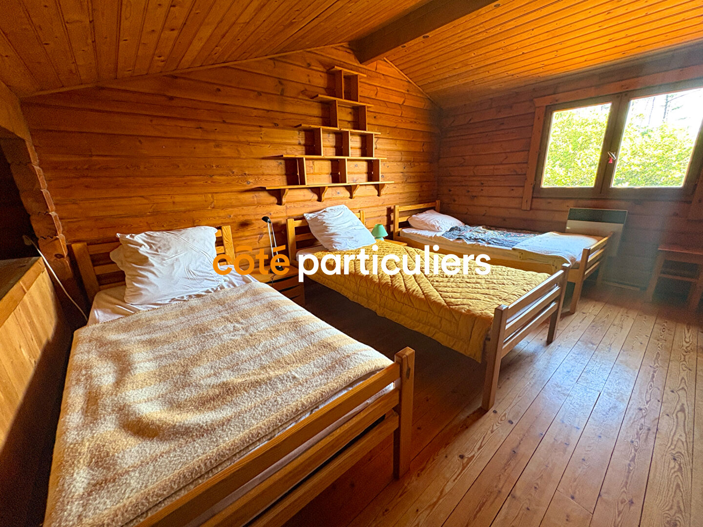 A SOULAC-SUR-MER, idéalement situé en bordure d'océan ainsi qu'à 1km du centre-ville, votre agence Côté Particuliers Soulac vous propose en EXCLUSIVITE ce charmant chalet en duplex type Finlandais d'une surface habitable d'environ 89m². Ce chalet est composé au rez-de-chaussée d'une véranda, un salon/séjour avec poêle à bois, cuisine ouverte équipée, un cellier, une chambre, une salle de bain avec double vasque, WC indépendant. A l'étage, 2 grandes chambres mansardées d'environ 20m² chacune, idéal pour recevoir famille et amis. Le tout sur une parcelle de terrain d'environ 804m² avec annexe composée d'une chambre et d'une salle d'eau. Garage attenant d'environ 18m². Relié à l'assainissement collectif A VISITER SANS PLUS TARDER !