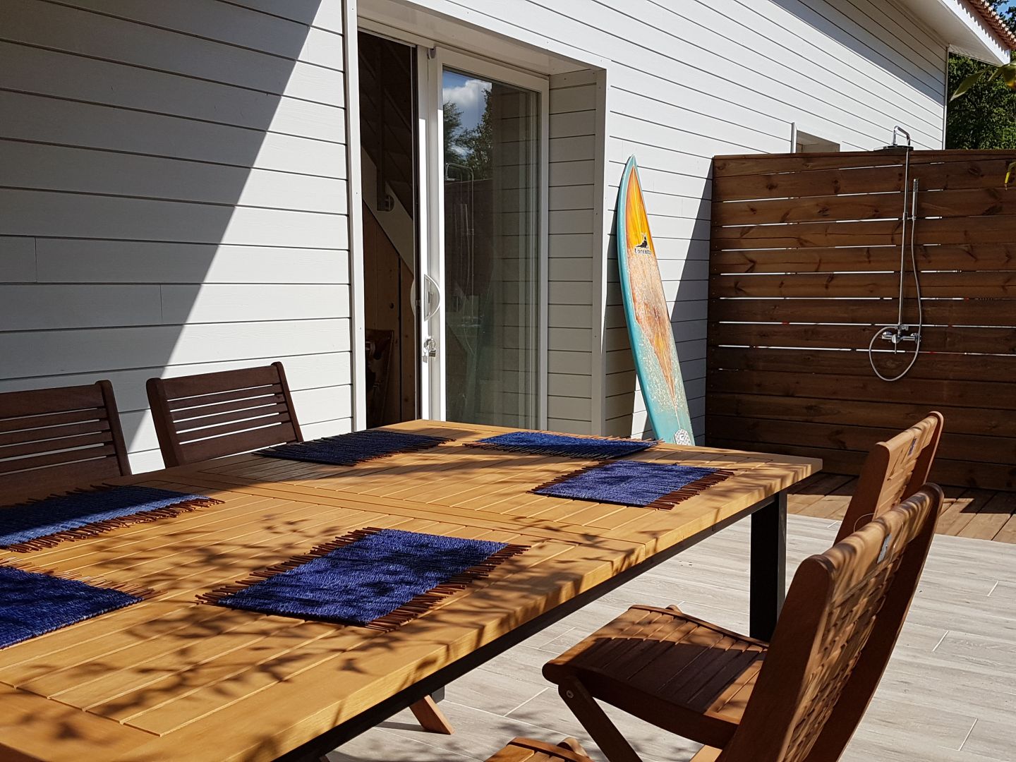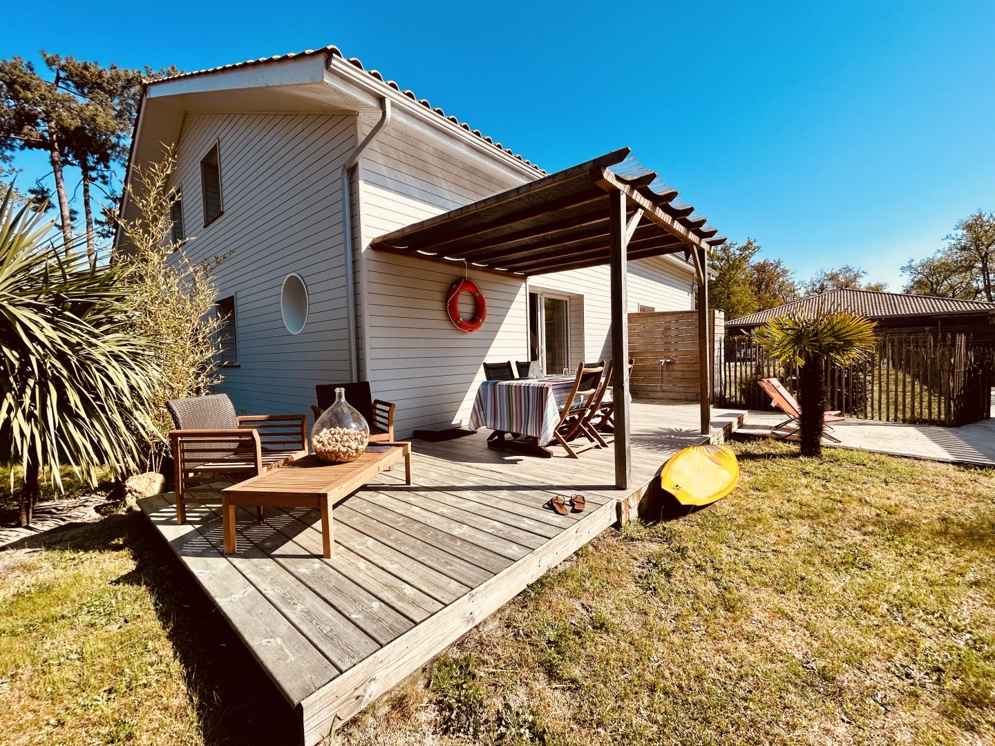 À Soulac sur Mer, secteur de l'Amélie, au calme à 5 min de la plage. Dans un cadre verdoyant à deux pas de la forêt et proche de l'océan, Villa mitoyenne offrant un vaste séjour lumineux avec cuisine entièrement équipée. Cet espace offre un couchage d'appoint avec canapé lit en 160, un grand écran et wifi. Une salle d'eau avec double vasque et douche à l'italienne, wc. A l'étage, une coursive dessert une première chambre avec lits superposés et une seconde chambre plus grande équipée d'un lit en 160. A l'extérieur, une terrasse carrelée avec espace salon de jardin et barbecue. Jardin clos et parking privé. L'accès à une piscine couverte(en journée), partagée entre quatre logements, est inclus dans le tarif. Logement neuf et en très bon état. Base logement 6 personnes : possibilité de logement complémentaire et indépendant pour des vacances entre amis ou en famille. TARIFS SAISON 2026 : Du 04/07/26 au 18/07/26 = 1000€ par semaine Du 18/07/26 au 25/07/26 = 1300€ par semaine Du 25/07/26 au 01/08/26 = 1500€ par semaine Du 01/08/26 au 22/08/26 = 1800€ par semaine Du 22/08/26 au 29/08/26 = 1000€ par semaine Du 29/08/26 au 05/09/26 = 800€ par semaine Possibilité de week-end à partir de 2 nuits : 200 euros Possibilité de location de kit linge : 20€ par lit